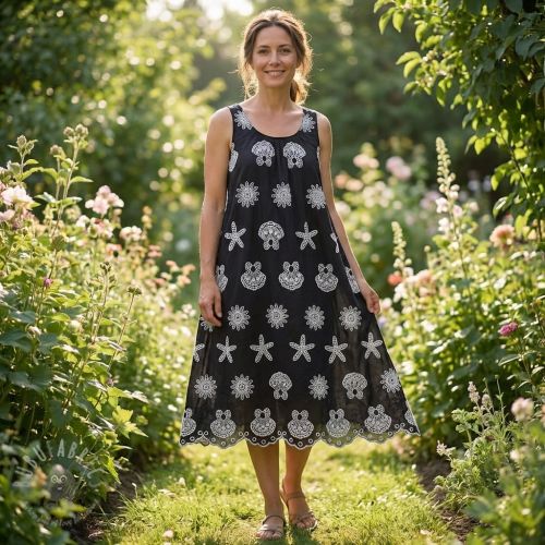 Pamuk EMBROIDERY Sea ornaments black