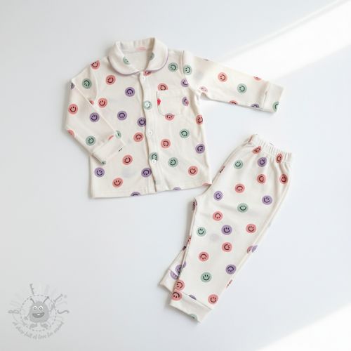 Pamuk FLANNEL Happy faces off white green