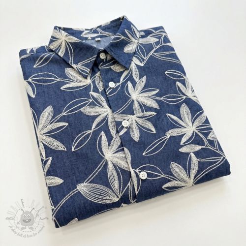 Pamuk VOILE EMBROIDERY Flowers navy