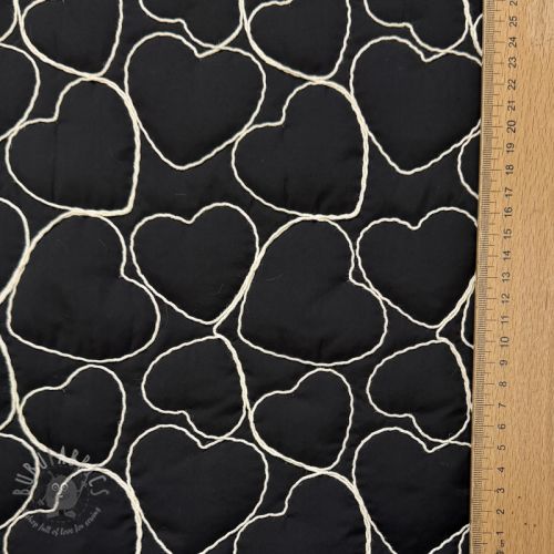 Prošivena tkanina EMBROIDERY Hearts black