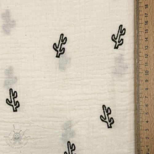 Tetra Tkanina/Muslin EMBROIDERY Cactus natural