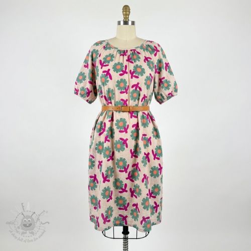 Tetra Tkanina/Muslin Flowers natural/pink by JENNIFER BOURON ORGANIC