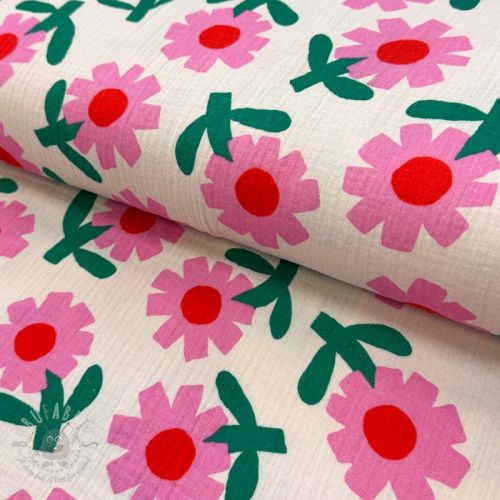 Tetra Tkanina/Muslin Flowers pink by JENNIFER BOURON ORGANIC