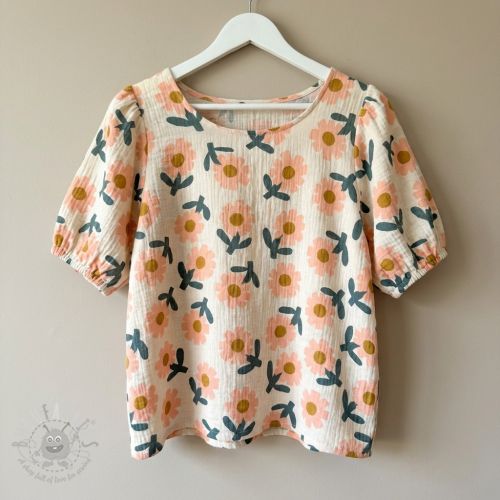 Tetra Tkanina/Muslin Flowers peach by JENNIFER BOURON ORGANIC