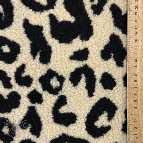 Tkanina za kapute TEDDY JACQUARD Animal skin black