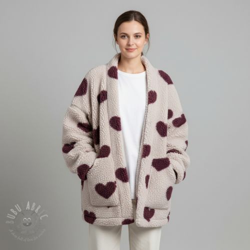 Tkanina za kapute TEDDY JACQUARD Hearts rouge