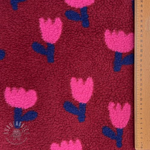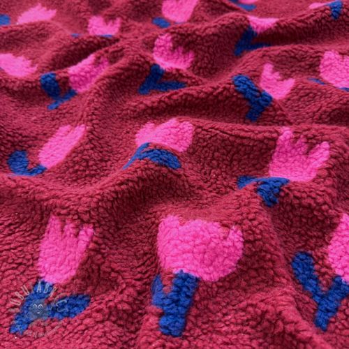 Tkanina za kapute TEDDY JACQUARD Tulips dark red