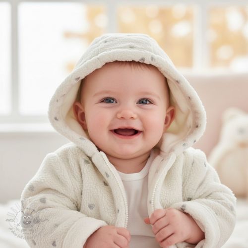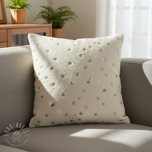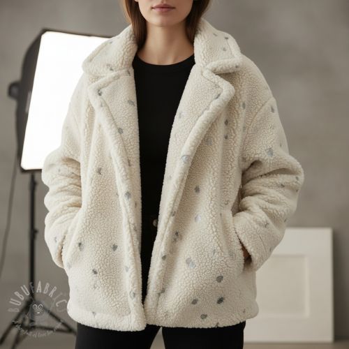 Tkanina za kapute TEDDY Tossed hearts silver