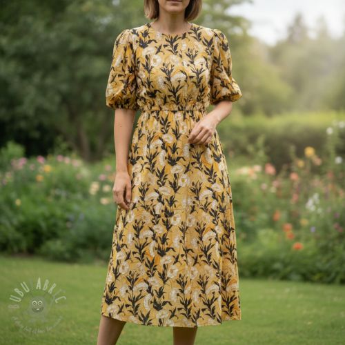 Viskoza LUREX White flowers ecru digital print
