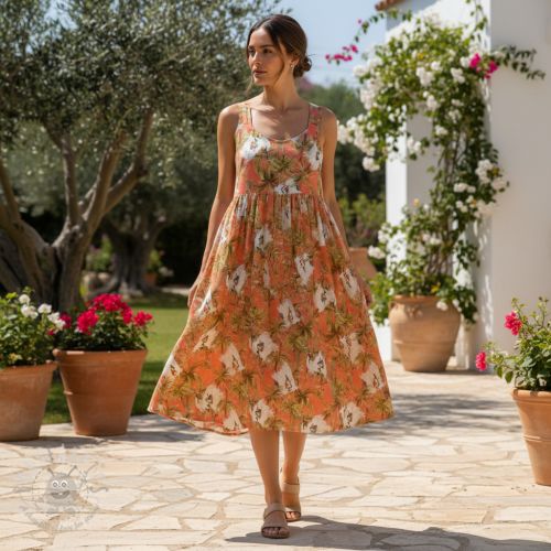 Viskoza s lanom Crane bird design B digital print