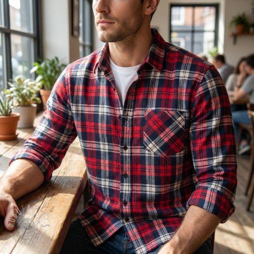 Viskoza Scottish Check YARN DYED BRUSHED Atlas red